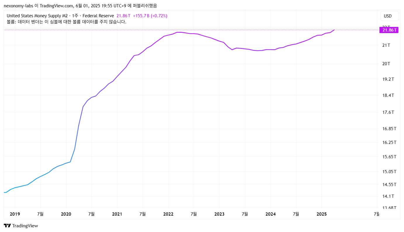 그러면 이런 질문을 할 수 있죠. 지금 M2 올라가는 것 안 보이냐? 보입니다. 하지만, 이 M2가 올라간다고 해서 꼭 좋은 것은 아닙니다. 왜냐고요? 바로 경제 성장률 때문입니다.